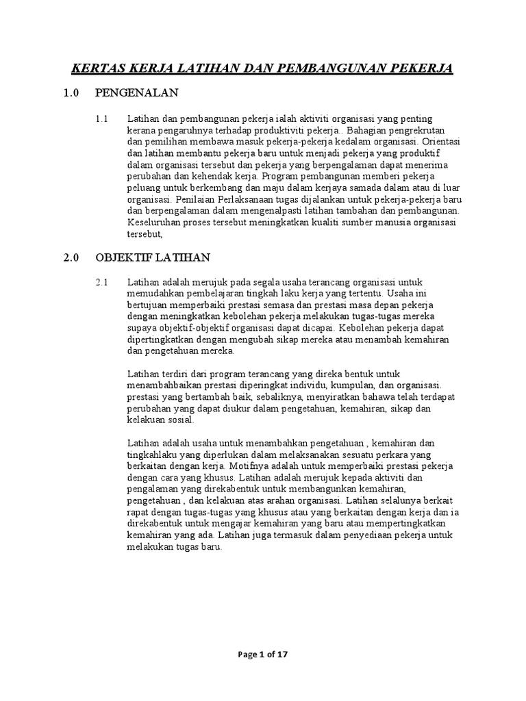 Kertas Kerja Latihan Dan Pembangunan Pekerja Pdf