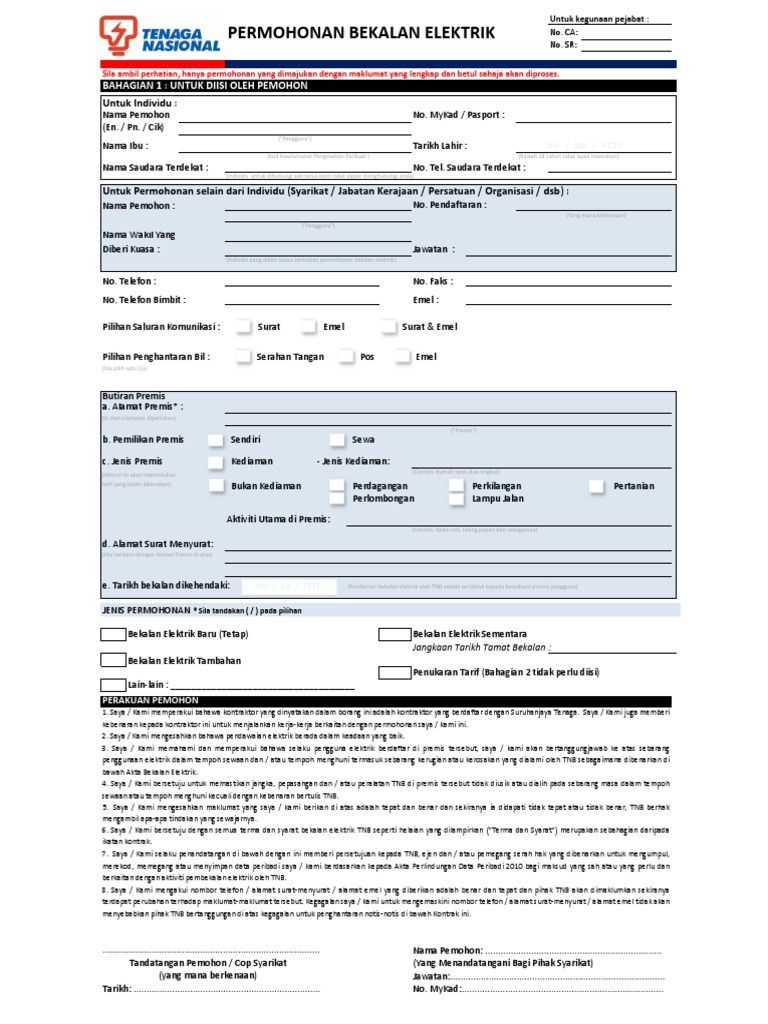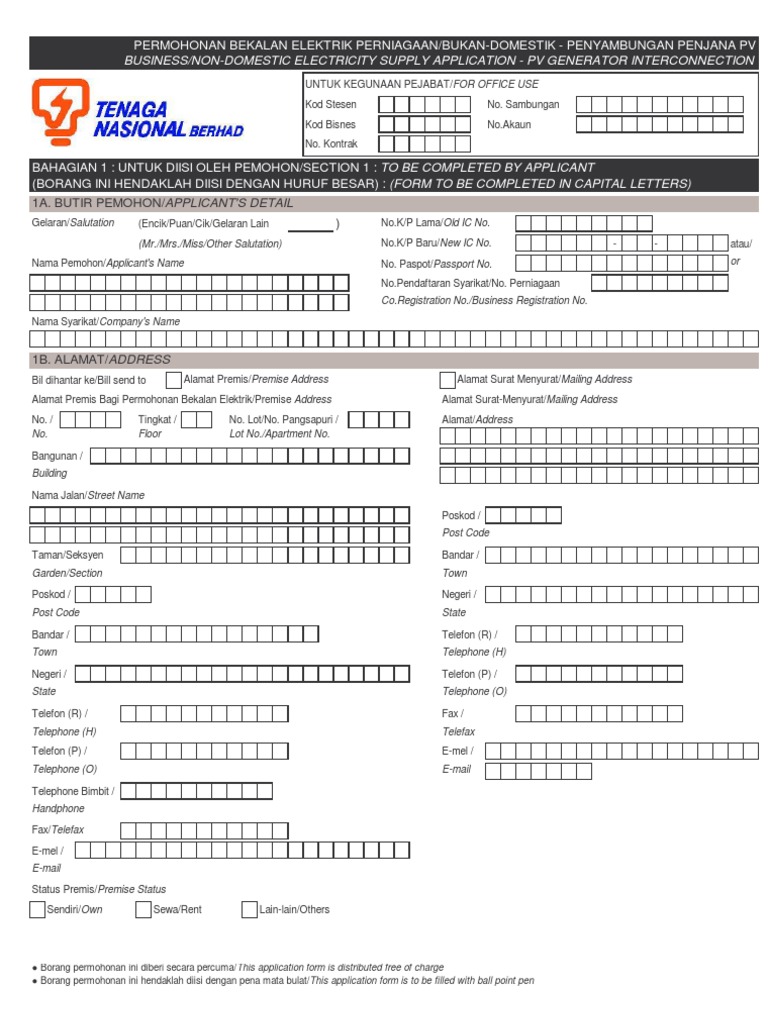 Borang Permohonan Bekalan Elektrik Rumah Sewa Written By Escano77 Friday, April 1, 2022 Add Comment Edit Permohonan Bekalan Elektrik Perniagaan Bukan Mbipv Project Mbipv Supply Application Non Domestic Pdf Cara Memohon Bekalan Tnb Bagi Kerja Letrik Johor Bahru Facebook Borang Permohonan Bekalan Elektrik 2021 Pdf Share this post